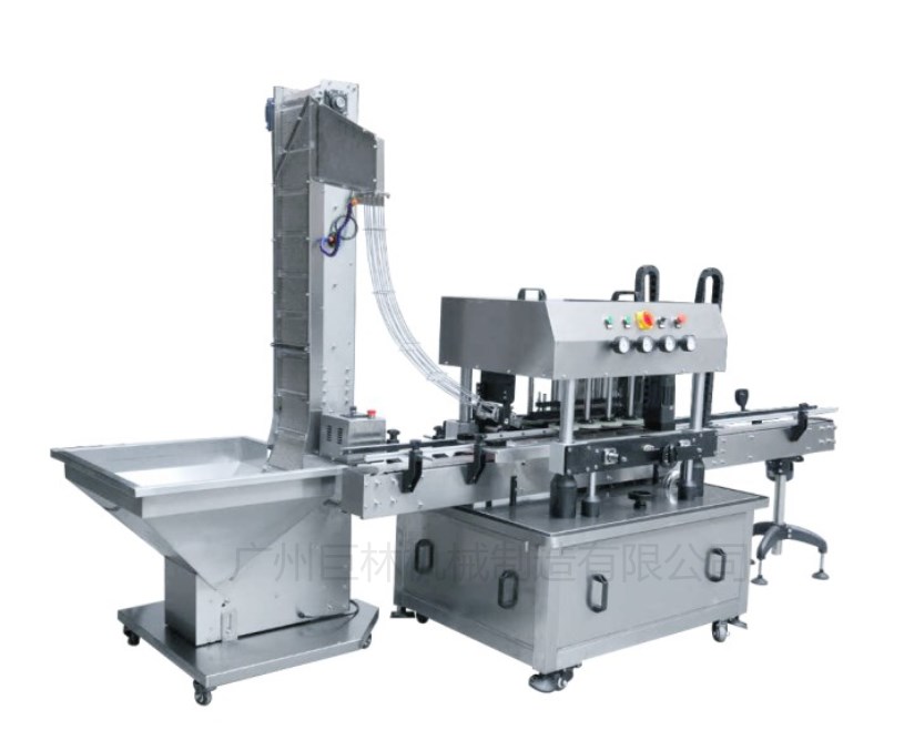 全自動直列式旋蓋機是參照國際先進機型改進設計、旋蓋速度快,合格率高、操作方便。可適用于食品、制藥、日化、農(nóng)藥、化妝品等行業(yè)的不同瓶形的旋蓋。四臺調(diào)速電機分別用于供蓋、夾瓶、傳送、旋蓋,機器自動化程度高,穩(wěn)定性好,調(diào)節(jié)方便,更換瓶形或蓋時無須備件,只需作調(diào)整即可完成(如配上蓋機,可進行自動上蓋)可以根據(jù)實際需要選配。