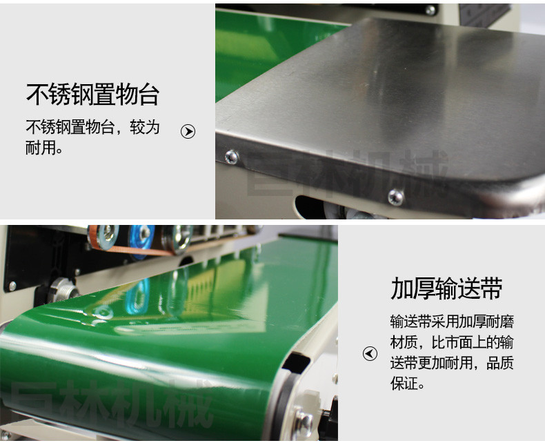 該系列封口機(jī)采用電子恒溫控制和無級(jí)調(diào)速傳動(dòng)系統(tǒng),具有自動(dòng)連續(xù)封口、印刷產(chǎn)品標(biāo)簽、一次完成之功能,并可臥、立落地使用。用于單層薄膜及各種復(fù)合薄膜的封口、制袋,廣泛應(yīng)用在食品、制藥、種子、化工、輕工等部門。